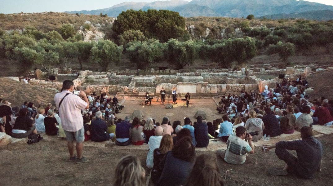 Το απόγευμα της τελευταίας Παρασκευής του Ιουνίου, λίγη ώρα πριν δύσει ο ήλιος, ο περίπατος στον αρχαιολογικό χώρο της Απτέρας Χανίων είχε μια ομορφιά παραπάνω από τη συνηθισμένη. Καθώς περπατούσες το χωμάτινο μονοπάτι, ανάμεσα από τις φωνές των τζιτζικιών μπορούσες να διακρίνεις τον ήχο μιας λύρας.