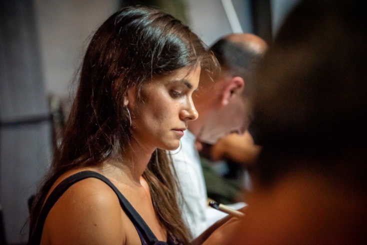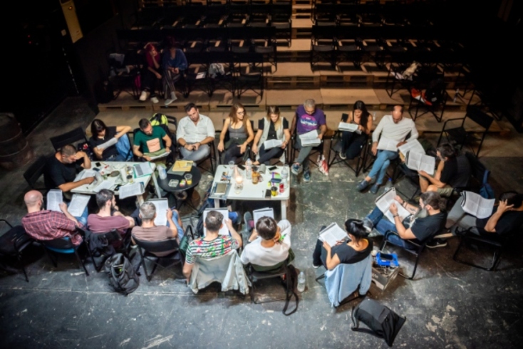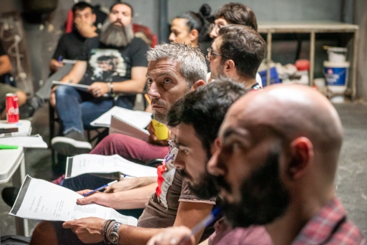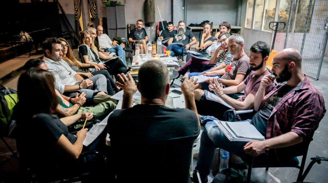 Το βλέμμα του σκηνοθέτη φεύγει από τα χαρτιά που περιγράφουν το σκηνικό του έργου και συναντιέται με αρκετά ζευγάρια μάτια που κοιτάζουν πότε τον ίδιο, πότε τα Α4 που κρατούν στα χέρια τους.