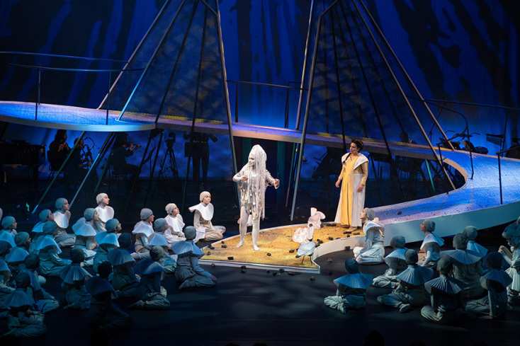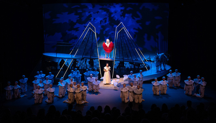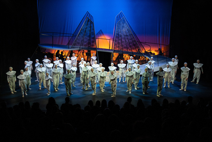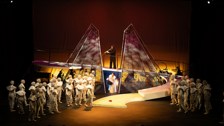 H νέα όπερα της Σοφίας Καμαγιάννη σε λιμπρέτο της Ελένης Ζαφειρίου, βασισμένο στο ομώνυμο παραμύθι του σπουδαίου Τούρκου ποιητή Ναζίμ Χικμέτ και σκηνοθετημένη από την Ελένη Ευθυμίου, που έκανε πρεμιέρα το περασμένο Σάββατο, είναι μια πραγματικά πρωτότυπη δουλειά. Πέρα από τη σύγχρονη αλλά απόλυτα βατή μουσική γραφή της, με τη διαρκή εναλλαγή μελωδίας και ρυθμού, αυτό που κάνει την έκπληξη είναι η δραματουργική καινοτομία που εισήγαγε η Ελένη Ζαφειρίου για να αφηγηθεί τη μεστή από υψηλούς συμβολισμούς, μηνύματα και ισχυρά συναισθήματα ιστορία της. Ανέθεσε τον κεντρικό ρόλο του αφηγητή στη χορωδία. Έναν χορό-πρωταγωνιστή, που οδηγεί τη ροή, εμπλέκεται στα δρώμενα, σχολιάζει και συμπάσχει. Στον κομβικό αυτόν ρόλο, η παιδική και νεανική χορωδία Rosarte της maestra Ρόζης Μαστροσάββα, αποδείχθηκε για άλλη μια φορά αντάξια της φήμης της. Μικρά και λίγο μεγαλύτερα αγόρια και κορίτσια, κυριάρχησαν για περισσότερο από μια ώρα στη σκηνή, εντυπωσιάζοντας με τις μελωδικές φωνές τους, την ακρίβεια στις χορογραφημένες από την Έλενα Γεροδήμου κινήσεις αλλά και με την εκφραστικότητά τους, στην εκφορά του ποιητικού λόγου. Το μεγαλύτερο μπράβο ανήκει δίχως άλλο, σε αυτά τα παιδιά, όπως και στους τέσσερις νεαρούς ερμηνευτές και ερμηνεύτριες –επίσης μέλη της Rosarte– των ρόλων του Περιστεριού, του Λαγού, του Άνεμου και του Φιδιού.
