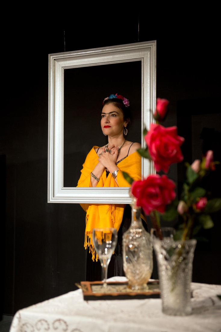 «Να έρχεσαι με τα κύματα στην εδική μου αγκάλη…αμυγδαλάκι τσάκισα και μέσα σε ζωγράφισα…». Όσο παίζει το μικρασιάτικο τραγούδι «Θαλασσάκι μου» -διασκευή της Σοφίας Αβραμίδου-, το σκοτάδι έχει βυθίσει την σκηνή και η Αγγελική Τσαμπάζη ετοιμάζεται για τον μονόλογο της. Στην γενική πρόβα της παράσταση της «Εύθραυστον» στο Θέατρο Φούρνος το σκηνικό είναι λιτό, ένα παραβάν με ζωγραφισμένα λουλούδια και κρεμασμένα ρούχα που θα ταίριαζαν γάντι στην γυναίκα-σύμβολο Frida Kahlo, ένα κρεβάτι για «μοναχικούς», μια κορνίζα-καθρέφτης που αιωρείται, ένα μικρό τραπεζάκι με καλλυντικά, κοσμήματα και πάνω του εκείνα τα εντυπωσιακά πολύχρωμα τριαντάφυλλα στις αποχρώσεις του φουξ-μωβ που αναγνωρίζεις αμέσως σε ποια θα μπορούσαν να ανήκουν. Η Αγγελική φοράει το σατέν νυχτικό της και η παράσταση «βουτάει» αμέσως στα βαθιά, μιλώντας για το πώς αντιμετωπίζεται ο κόσμος, βιώνοντας το κάθε τι «ως μη αυτονόητο».