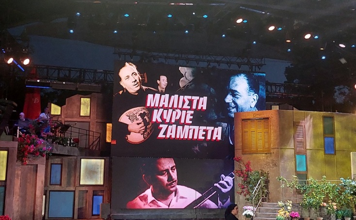 Καθ' όλη τη διάρκεια της παράστασης, ακούμε στο σύνολο 27-30 τραγούδια. Ολοι τραγουδάμε. Σαν ηθοποιοί, βέβαια, δεν είμαστε τραγουδιστές. Και υπάρχει και ζωντανή ορχήστρα. Οι μουσικές του Ζαμπέτα μιλάνε σε όλους μας. Είναι συνδεδεμένες με τα παιδικά μας χρόνια. Εγώ, όταν ακούω τις πρώτες νότες από τα τραγούδια του, θυμάμαι τα θερινά τα σινεμά. Γιατί πάντα στα θερινά σινεμά ακούγαμε Ζαμπέτα. Θεωρω ότι είναι στο DNA του Έλληνα. Δεν υπάρχει κανείς που να μην ακούσει κάποιους στίχους από τα τραγούδια του και να μην ανατριχιάσει, να σηκωθεί να χορέψει, να τραγουδήσει.