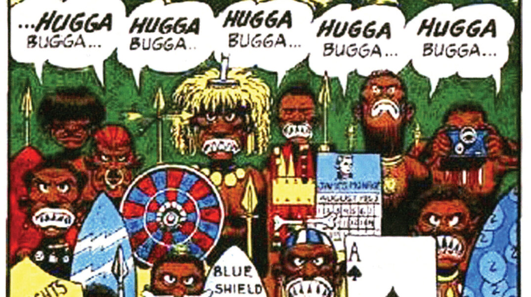 Δια να μην πολυλογούμεν, αυτό το φιλμ με την μίαν πόζα τo ήβρε τελικά ένας καλλιτέχνης τού Mad ( ένα τρελαμένο comic book που ’χε αρχίσει να βγαίνει εκείνον τον καιρό) εκεί που σκάλιζε γενικά στις διακοπές του, σ’ ένα μουσειακόν αρχείον στο Texas. Μαζί ήνταν και κάποιο κιτρινιασμένο ημερολόγιο απ’ το 1931 συνταγμένο πρόχειρα από κάποιον –σίγουρα μονόχνωτο– ανθρωπολόγο που έγραφε για μιά περιπλάνησή του αψηλά στή Σιέρρα όπου ένα δειλινό σε ερημιά, βρέθηκε φάτσα με μιά μεγάλη φαμίλια Ούκα γύρω από δυό φωτιές να τρώνε στη γη κι αυτοί τον είδαν με καλό μάτι, έτσι μπαϊλντισμένος και χαζοντημένος που ήνταν και αυτοί είχαν ειρηνέψει με τον καιρό και τελικά κόλλησε με τη φυλή κι έμεινε μαζί τους πολλούς μήνες κι άκουσε κι έγραψε πολλά για την ιστορία και τις πίστες τους και όλα τα σημείωνε στο τεφτέρι του. Αυτός απόθανε στο San Antonio πριν από χρόνια, το 1944. Ο καλλιτέχνης προμηθεύτηκε σε φωτοκόπιες τη φωτογραφία με τούς αγριεμένους και το τεφτέρι του ανθρωπολόγου ολόκληρο (τρία ντόλλαρς κι εξήντα σέντσια για το σέρβις) αλλά δεν τού χρειάστηκε στη δουλειά του τελικά, μόνον εικονογράφησε άσχετη ιστορία με τον Τάρζαν (“Melvin of the Apes’’, τεύχος Mad # 6, 1952) όπου έμπασε στα καρεδάκια τής ιστορίας κι ένα σχέδιο του απ’ το φωτο-καρέ με τους Ούκα αραδιασμένους. Αυτό το «Χούγκα-Μπούγκα» που τούς έβαλε να λένε όλοι, το θυμόταν απ’ το ημερολόγιο τού αποθαμένου ότι θα πει κάτι σαν «Σάς έχουμε χεσμένους». Μοντάρισε δε, για πλάκα, κι έναν Ούκα στους από πίσω να έχει φωτογραφική και να τραβάει τούς φωτογραφίζοντες. Χά-χά.