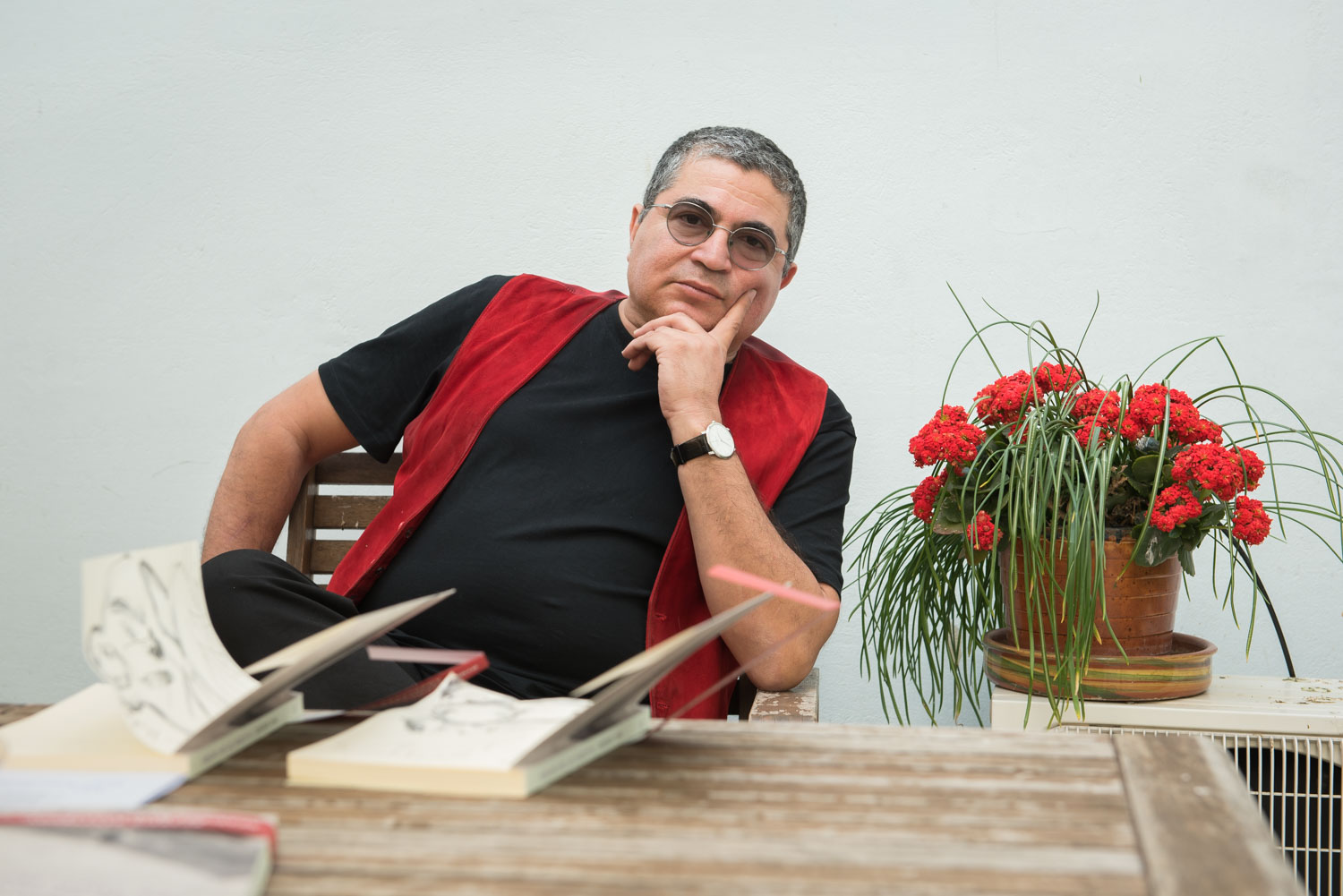 Καθόμαστε στην εσωτερική αυλή των εκδόσεων Άγρα συνοδεία πουλιών που έχουν φωλιές στα δένδρα. «Δεν αντέχω τα πουλιά, αλλά επειδή είμαι ποιητής δεν τολμάω να το μαρτυρήσω» θα πει ξεκαρδισμένος. Ως παράδειγμα στο εγκυκλοπαιδικό λήμμα «ανοιχτόκαρδος άνθρωπος» θα έπρεπε να υπάρχει το όνομα του συγγραφέα Mahi Binebine. Είναι αφοπλιστικό το γέλιο του, καθώς βγαίνει αυθόρμητα ακόμα και όταν αναφέρεται στις απειλές που δέχτηκε. «Όταν κυκλοφόρησε το βιβλίο είχα ελάχιστες ενοχλήσεις από την κυβέρνηση. Μετά άρχισα να δέχομαι απειλητικά μηνύματα με sms από ιδιώτες. Δεν έδωσα σημασία, αλλά άρχισα να το συζητάω όταν στα sms διάβαζα μηνύματα όπως “ξέρουμε σε ποιο σχολείο πηγαίνει η κόρη σου”. Μέχρι που ο αδελφός μου μού είπε “μην ανησυχείς. Όταν είναι να σε καθαρίσουν θα το κάνουν χωρίς να στείλουν ειδοποίηση”». Το λέει και τραντάζεται από τα γέλια. Καθώς τον ακούω να γελάει σκέφτομαι το «Όνομα του Ρόδου» του Ουμπέρτο Έκο. Θα μισούν το γέλιο του οι φανατικοί σκοταδιστές οποιασδήποτε θρησκείας.