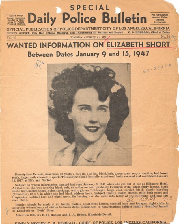Δελτίο που διανεμήθηκε στο Αστυνομικό Τμήμα του Λος Άντζελες στις 15 Ιανουαρίου 1947