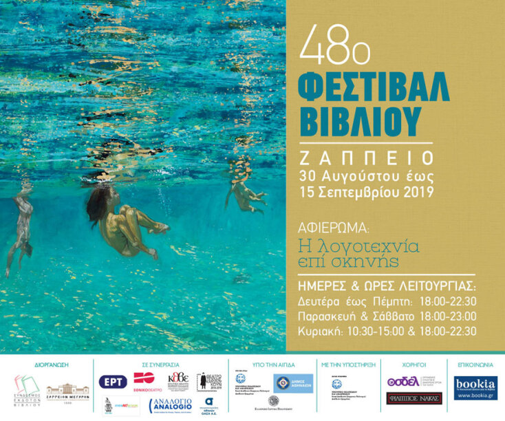 Το 48ο Φεστιβάλ Βιβλίου πραγματοποιείται στο Ζάππειο από τις 30 Αυγούστου έως τις 15 Σεπτεμβρίου 2019 με κεντρικό αφιέρωμα τη«Λογοτεχνία επί σκηνής».