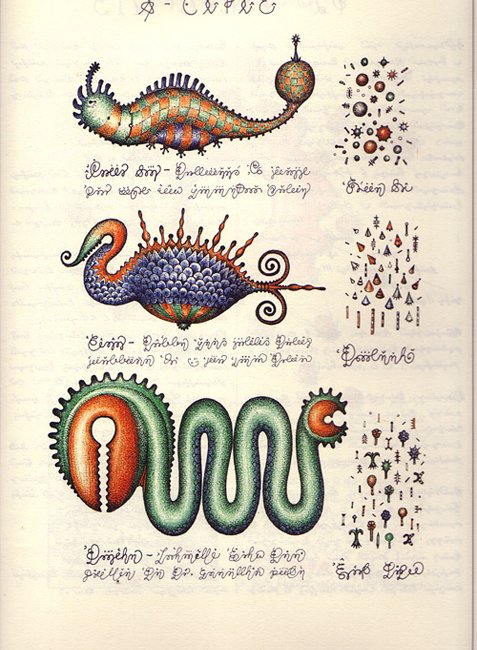 Το «Codex Seraphinianus» του Ιταλού Λουίτζι Σεραφίνι εκδόθηκε για πρώτη φορά το 1981. Γραμμένο σε στυλ εικονογραφημένης εγκυκλοπαίδειας, το μεγάλων διαστάσεων βιβλίο απεικονίζει, κατά τα φαινόμενα, έναν κόσμο διαφορετικό από τον δικό μας, αυτόν μιας παράλληλης διάστασης ή ενός εξωγήινου πλανήτη. Ή έτσι φανταζόμαστε. Αφού είναι όλο γραμμένο σε μια φανταστική, άρα και ακατάληπτη γλώσσα.