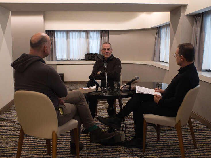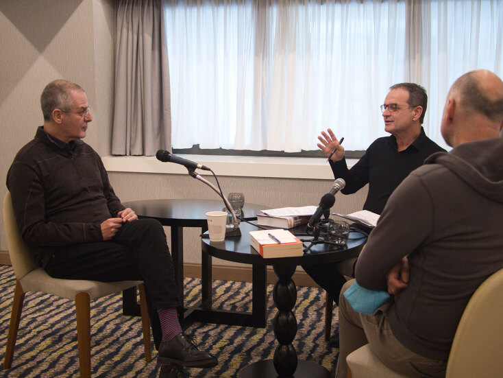 Ο καθηγητής Πολιτικής Επιστήμης Στάθης Καλύβας μαζί με τον δημοσιογράφο Μάκη Προβατά συζητούν με τον καθηγητή ιστορίας στο πανεπιστήμιο Κολούμπια, Μαρκ Μαζάουερ, με αφορμή το βιβλίο του «Ελληνική Επανάσταση» που κυκλοφορεί από τις εκδόσεις Αλεξάνδρεια.