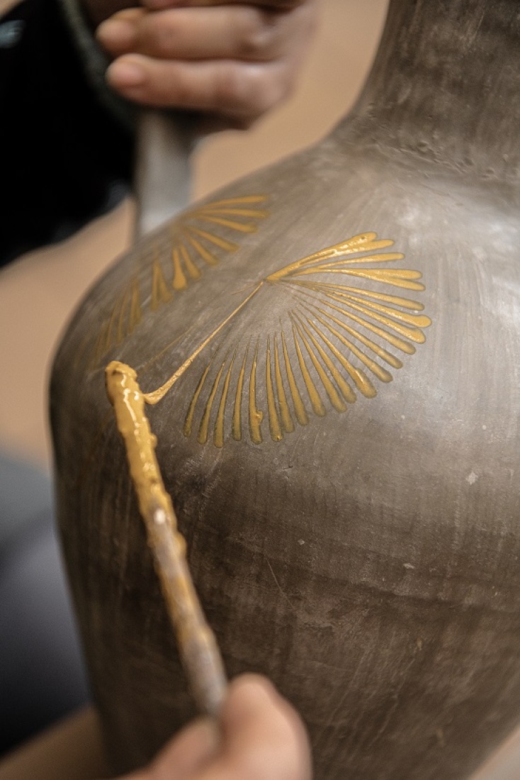 Η Μαρινίκη, σύζυγος του Γιώργη και πλουμίστρα στο εργαστήρι τους, παίρνει στα χέρια της τον πλοκό, ένα πινέλο στην άκρη του οποίου είναι δεμένη μια παχιά κλωστή από μαλλί προβάτου. Βουτάει τον πλοκό στην ώχρα, μαζεμένη από το Αόρι του Ψηλορείτη, και σχεδιάζει ένα ανθέμιο -το σήμα κατατεθέν του χωριού- σε ένα πτηνόμορφο αγγείο. Άλλη μια τεχνική που χρησιμοποιείται εδώ και χιλιετίες στις Μαργαρίτες είναι αυτή της χρήσης λείων βότσαλων από τη θάλασσα ή το ποτάμι για το στίλβωμα των σκευών. Αντίστοιχης ηλικίας είναι και η ευρηματικότητα που χαρακτηρίζει κάποια από τα αντικείμενα στους πάγκους τριγύρω. Το μελοκούρουπο ήταν ένα σκεύος με διπλό χείλος που χρησιμοποιούνταν για την αποθήκευση μελιού. Το κάτω χείλος γέμιζε με νερό και προστάτευε το περιεχόμενο από τα μυρμήγκια. Αντίστοιχα, η κούπα του Πυθαγόρα δίδασκε την αξία του μέτρου και ήταν φτιαγμένη με τρόπο τέτοιο που αν ο χρήστης της την παραγέμιζε με κρασί, τότε όλο το υγρό χυνόταν.