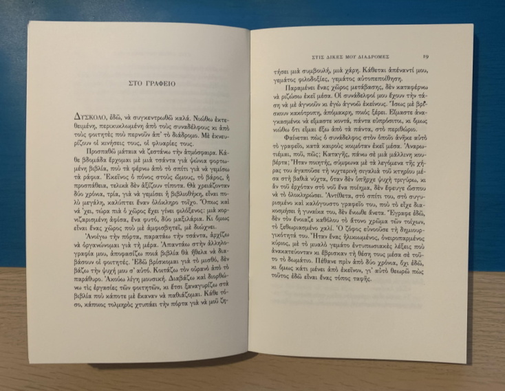Τα πάντα: το σπίτι μας, η δουλειά μας, οι συνάδελφοί μας, οι γείτονες, οι μαγαζάτορες, οι μικρές μας αγορές, το σούπερ-μάρκετ, το χαρτοπωλείο, τα βήματά μας στην πόλη, οι άνθρωποι με τους οποίους διασταυρωνόμαστε, αυτά που λένε μεταξύ τους, αυτά που λένε σε εμάς, εκείνο το παλιό μισογκρεμισμένο σπίτι στη γειτονιά μας που κάποτε θα ήταν υπέροχο — οι δικές μας διαδρομές. Η Λαχίρι γράφει για την ίδια, γράφει για την πόλη, γράφει για τις άλλες γυναίκες, γράφει για όλους μας. Και δεν κατονομάζει τίποτε: δεν υπάρχει ούτε ένα όνομα στο βιβλίο, ούτε ανθρώπου, ούτε πόλης, ούτε χώρας, ούτε τίποτε. Αυτή η πόλη είναι η δική μας, και αυτή η γυναίκα είναι κάθε γυναίκα. Κυρίως όμως: είναι κάθε γυναίκα που επέλεξε να μένει μόνη, να είναι ανεξάρτητη, να απολαμβάνει τη μοναξιά της, αλλά και να ΜΗΝ την απολαμβάνει πάντα, γιατί βέβαια ούτε μπορεί να γίνει κάτι τέτοιο, ούτε θα ήταν «φυσιολογικό». Τη γεμίζει όμως με ό,τι αγαπά. Με τα σημειωματάριά της, με τα άλλα μικροπράγματα που της αρέσει να ψωνίζει, με το κολυμβητήριο, με τις βόλτες της, φυσικά με τη δουλειά της, με τους ανθρώπους που ξέρει, που την προσεγγίζουν, που τη θέλουν, ή που της ζητούν πράγματα. Ή που τους ζητά η ίδια.