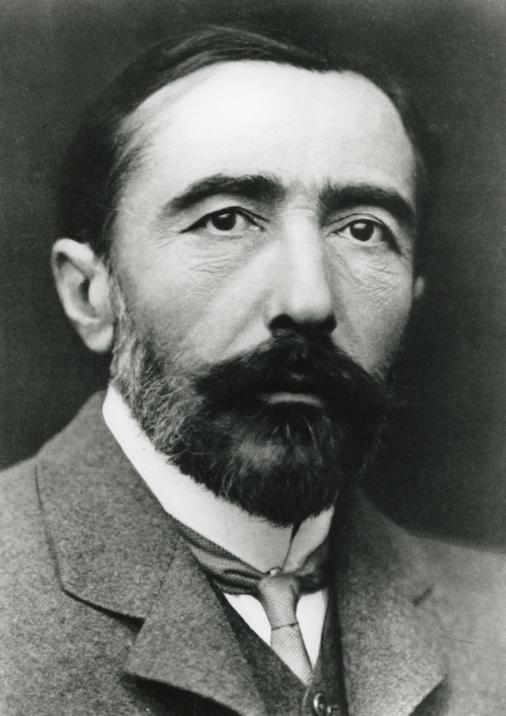 Ο Józef Teodor Konrad Korzeniowski γεννήθηκε το 1857 στο Μπερντίτσεφ, πόλη υπό ρωσική κυριαρχία αλλά με πολωνικό πληθυσμό. Ο πατέρας κι η μητέρα του συμμετείχαν στην αντίσταση των Πολωνών εναντίον της Ρωσίας, με αποτέλεσμα η οικογένεια να υποστεί διωγμούς και κακουχίες. Ο Józef έμεινε ορφανός από έντεκα χρονών. Πρωτομπάρκαρε το 1874, κι άρχισε να μαθαίνει τα αγγλικά το 1878, στα καράβια, διαβάζοντας τον Σαίξπηρ και τους Times. Το 1886 έγινε Βρετανός υπήκοος και άλλαξε το όνομά του σε Joseph Conrad, και το 1889 έγραψε το πρώτο του έργο (την «Τρέλα του Αλμάγιερ») στη «γλώσσα που τον υιοθέτησε», τα αγγλικά. Το 1894 εγκατέλειψε τη θάλασσα κι εγκαταστάθηκε στην Αγγλία. Η λογοτεχνική του μεγαλοφυΐα άρχισε να αναγνωρίζεται από τις αρχές του 20ού αιώνα. Πέθανε το 1924.