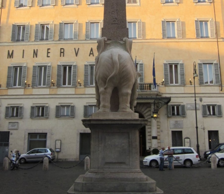 Το 1667 στην Piazza della MInerva, μπροστά από τον ιερό ναό της Santa Maria sopra Minerva της Ρώμης έγιναν τα αποκαλυπτήρια του ελέφαντα με τον οβελίσκο στη ράχη του, έργο του πατέρα της μπαρόκ γλυπτικής και αρχιτέκτονα Τζιαν Λορέντσο Μπερνίνι (Gian Lorenzo Bernini, 1598-1680). Όμως, ο οβελίσκος είναι αιγυπτιακός, περίπου του 580 π.Χ., δηλαδή της εποχής του Απρίη (Wahibre Haaibre, 589-570 π.Χ.), κατά πώς τον ονομάζουν ο Ηρόδοτος και ο Διόδωρος ο Σικελιώτης· ο Απρίης ταυτίζεται με τον Waphres του Μανέθωνα, και ήταν ο 4ος φαραώ της 26ης Δυναστείας, της οποίας ιδρυτής ήταν ο Ψαμμήτιχος Α΄ (Psamtik, 664-610 π.Χ.).