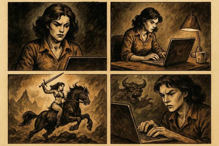 Όλοι μας δουλεύουμε, και για κάποιον λόγο όλοι μας δουλεύουμε πολύ. Κάνουμε δουλειές απαιτητικές, άσχημα πληρωμένες, κι έχουμε ένα σωρό σκοτούρες στο κεφάλι μας. Και ζούμε σε έναν κόσμο με Πούτιν, Τραμπ, μουλάδες, αγιατολάδες, και κάθε λογής παρανοϊκούς. Αλλά προχωράμε. Και, κάποιοι —καλώς ή κακώς— γράφουμε κιόλας. Και ΔΕΝ γράφουμε σε εκείνο το resort ή στον τάδε πύργο. Δεν παίρνουμε υποτροφίες: δεν έχουμε τα μέσα, και δεν είμαστε και στους κατάλληλους κύκλους για να τις πάρουμε και να φύγουμε για συγγραφικές διακοπές. Οπότε τι κάνουμε; Φτιάχνουμε χρόνο. Τον πλάθουμε. Τον δημιουργούμε. Τον γεννάμε.