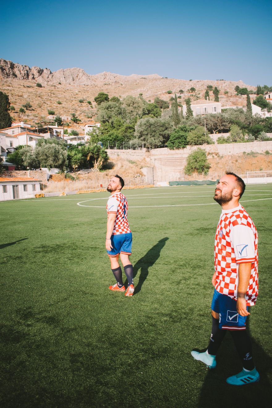 Ο λόγος που φτάσαμε στο νησί είναι για να συναντήσουμε τα μέλη του Αθλητικού Ομίλου Ύδρας, της μοναδικής ποδοσφαιρικής ομάδας του νησιού, και να περπατήσουμε σ’ ένα από τα ομορφότερα γήπεδα της Ελλάδας, για το οποίο έχουν κάνει αφιέρωμα ακόμη και κινέζικα τηλεοπτικά δίκτυα.