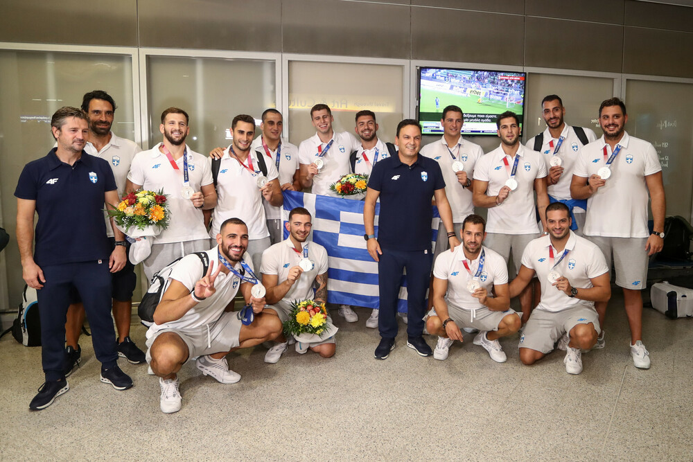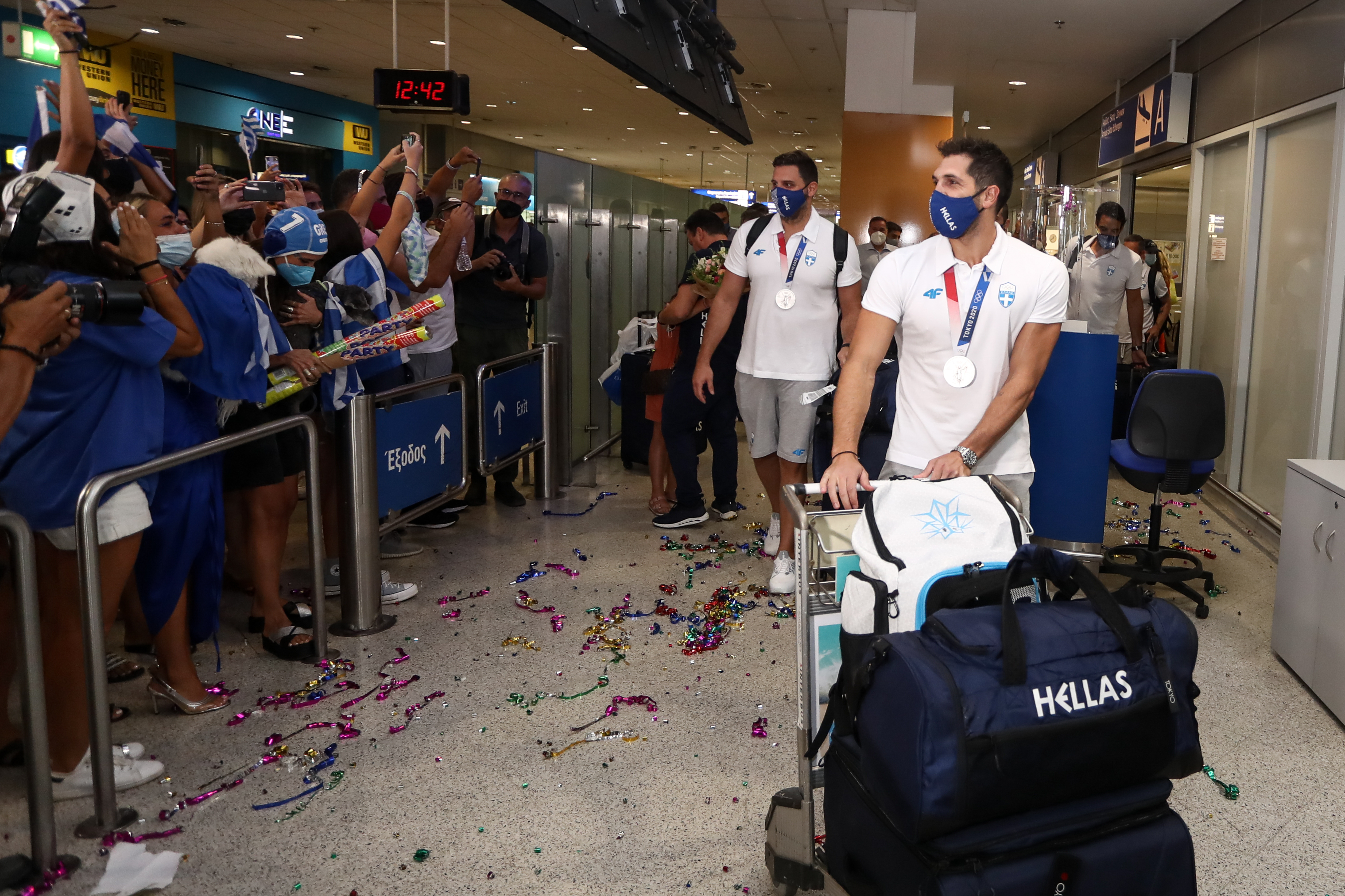 Τους αργυρούς Ολυμπιονίκες υποδέχτηκαν στο αεροδρόμιο της Αθήνας φίλοι, συγγενείς και θαυμαστές, ενώ οι παίκτες, με τα ασημένια μετάλλια στο στήθος, υπέγραψαν αυτόγραφα και φωτογραφήθηκαν με κόσμο.