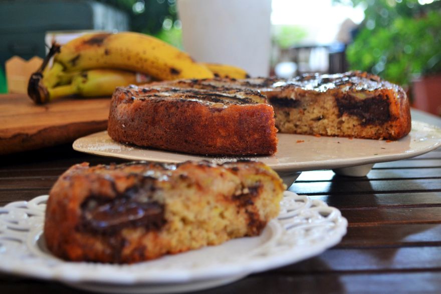 Μπανάνες βρίσκουμε όλο το χρόνο και παντού. Όμως τώρα το καλοκαίρι οι άτιμες μαυρίζουν στη φρουτιέρα και μαλακώνουν γρήγορα. Τόσο το καλύτερο, γιατί έχουμε να φτιάξουμε μαζί τους λαχταριστό κέικ! Το συγκεκριμένο είναι τόσο κολασμένο που σας συνιστώ να το φτιάξετε μόνο όταν θα έχετε μια μεγάλη παρέα να το μοιραστείτε. Μέχρι να καταφτάσουν οι ενισχύσεις, μην δοκιμάσετε να το κόψετε, σας προειδοποιώ. Άνθρωποι είμαστε…