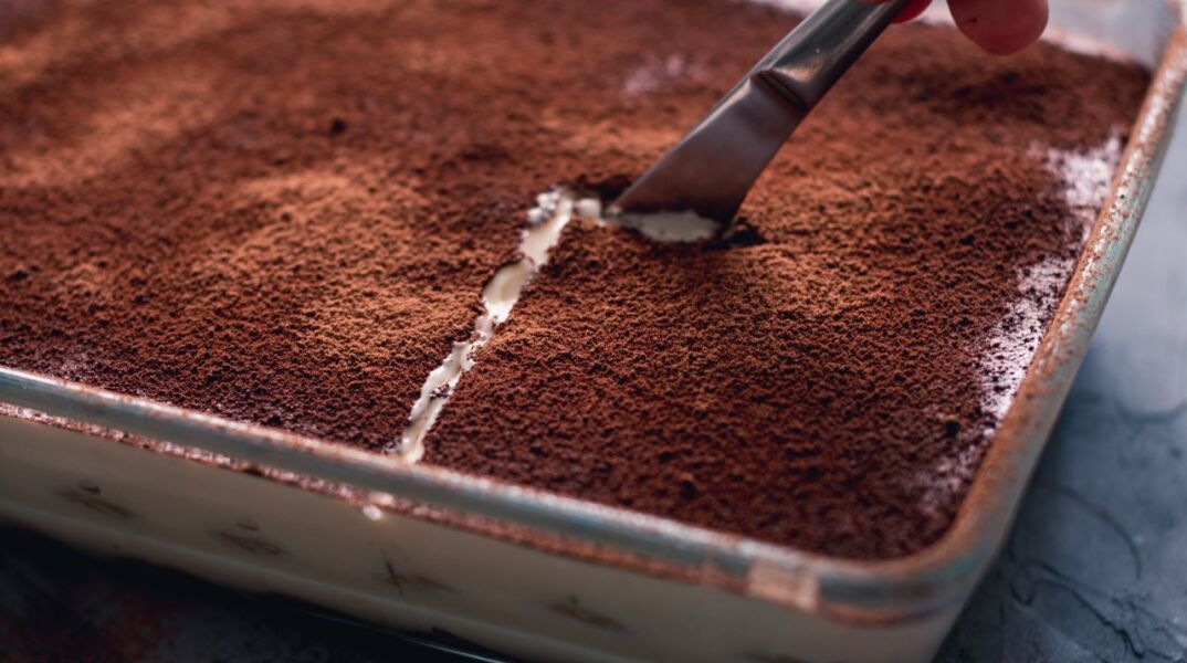 - Λίγο πριν το σερβίρισμα πασπαλίζουμε το τιραμισού με σκόνη κακάο.