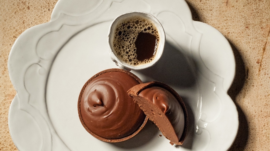 - Αδειάζουμε το μείγμα στις τεμαχισμένες κουβερτούρες και ομοιογενοποιούμε πολύ καλά με μια μαρίζ.