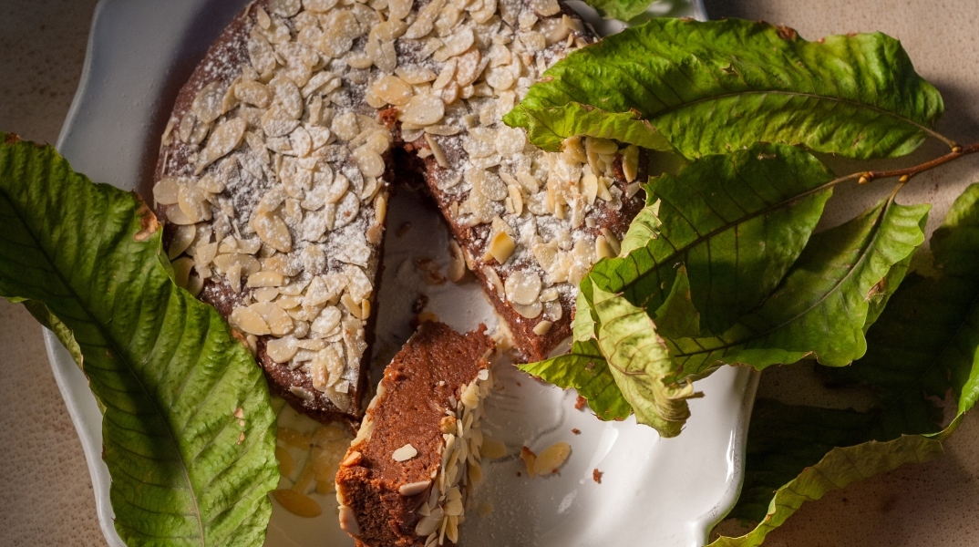 - Πασπαλίζουμε την επιφάνεια με το αμύγδαλο φιλέ και ψήνουμε, σε προθερμασμένο φούρνο, στους 160-170οCγια 20 λεπτά.