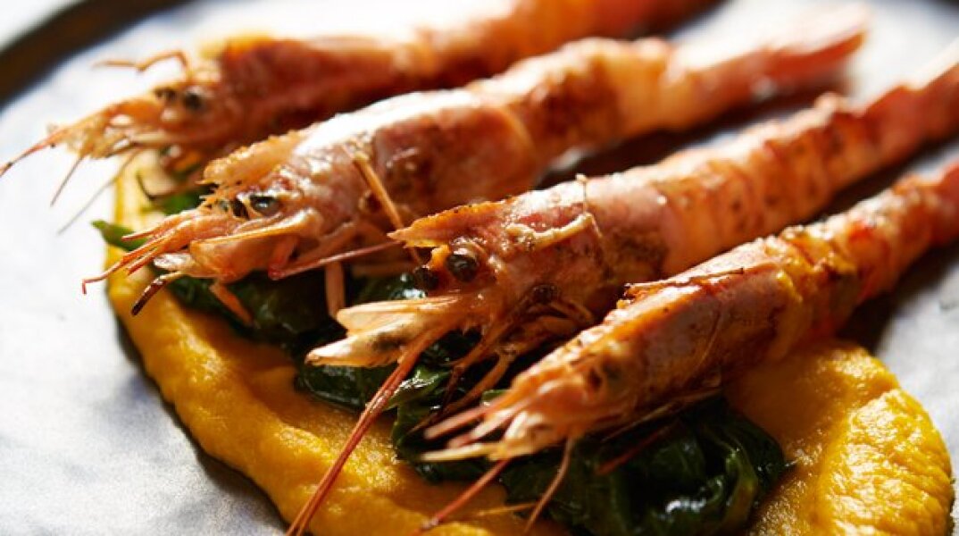 - Σερβίρουμε τον πουρέ στο πιάτο, βάζουμε από πάνω το σπανάκι και στο τέλος βάζουμε από πάνω τις γαρίδες.