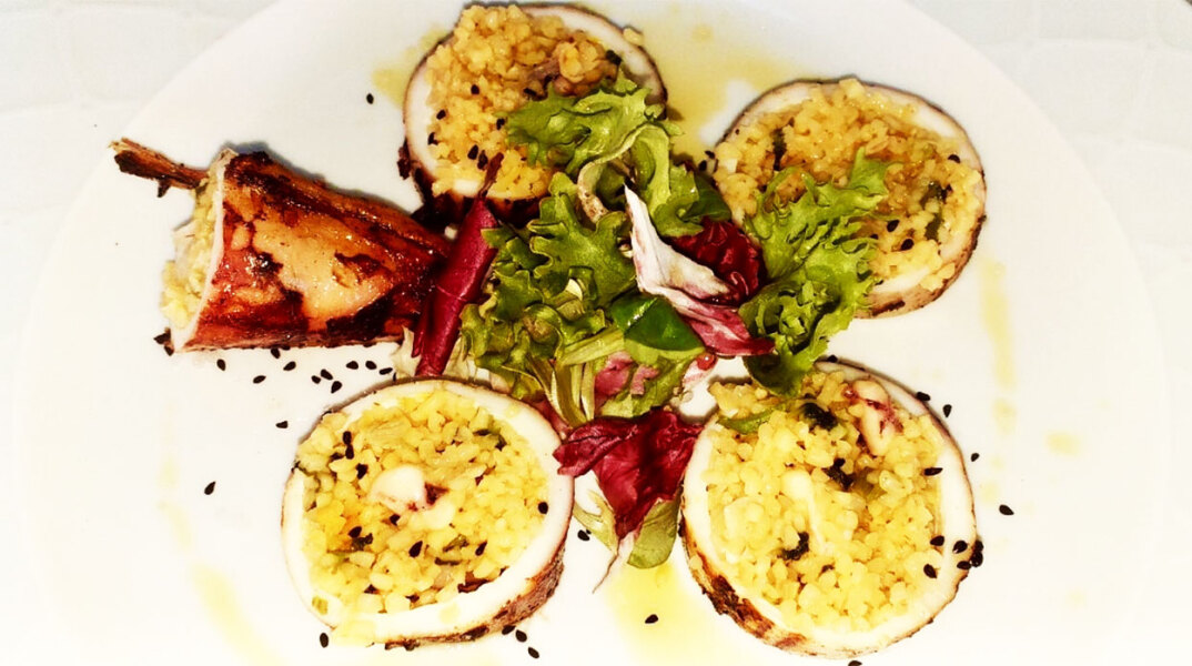 Ο σεφ Γιώργος Κόντας από το εστιατόριο Κυβέλη μας δίνει τη συνταγή για γεμιστό καλαμάρι με πλιγούρι