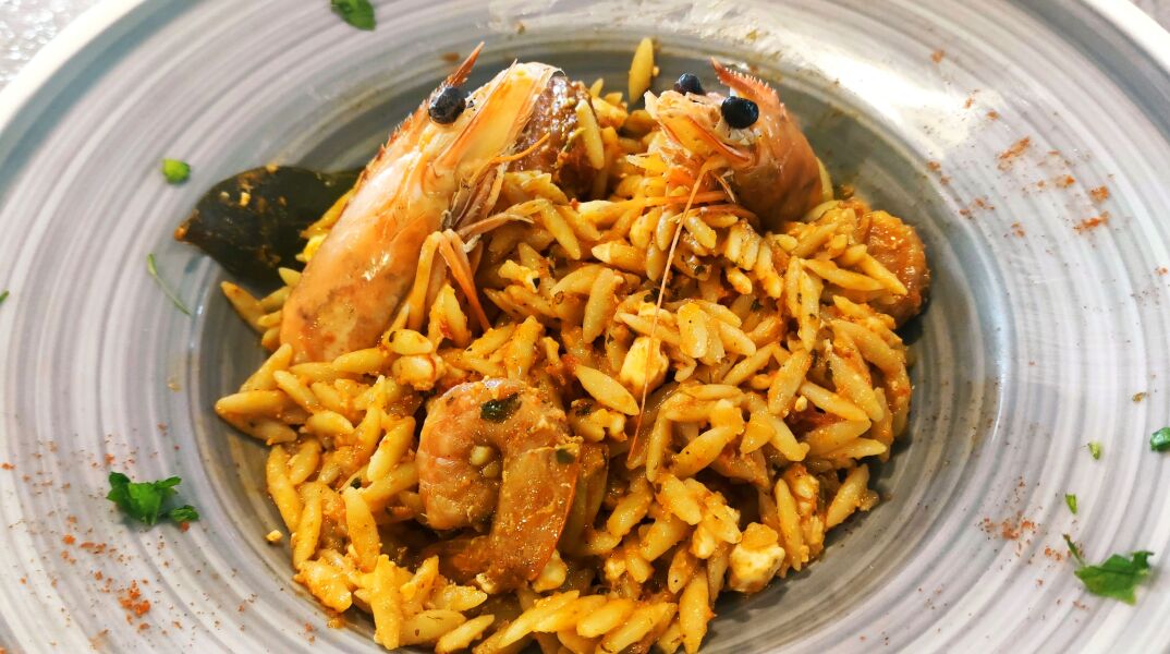Γαρίδες σαγανάκι με φέτα όλοι έχουμε φάει. Κριθαρότο με γαρίδες επίσης. Γιουβέτσι με γαρίδες και φέτα όμως; Η πληθωρική αυτή συνταγή που τα έχει όλα, -τις γαρίδες με την κρουστή θαλασσινή σάρκα, το κριθαράκι με το μαλακό, comfort «δάγκωμα» και τη φέτα να προσθέτει τις πικάντικες νότες της-, μας ενθουσίασε γι' αυτό και την «κλέψαμε» από τον σεφ Βασίλη Παπικινό, ιδιοκτήτη του κυκλαδίτικου εστιατορίου «Αλευρόμυλος» στη Μήλο. Απολαύστε την!