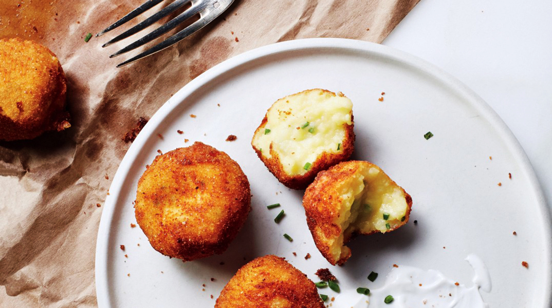 - Πλάθετε με το μίγμα 8 κροκέτες και βάζετε στο ψυγείο, να «σφίξουν», για 30 λεπτά τουλάχιστον.