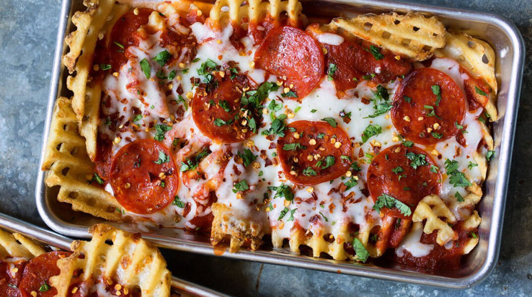 Ένας τρόπος να κάνεις τις αγαπημένες σου λιχουδιές ακόμα καλύτερες, είναι να τις συνδυάσεις με άλλες αγαπημένες σου λιχουδιές. Γιατί, τι μπορεί να πάει στραβά αν μπλέξεις τις τηγανιτές πατάτες με τα βασικά συστατικά της πίτσας;