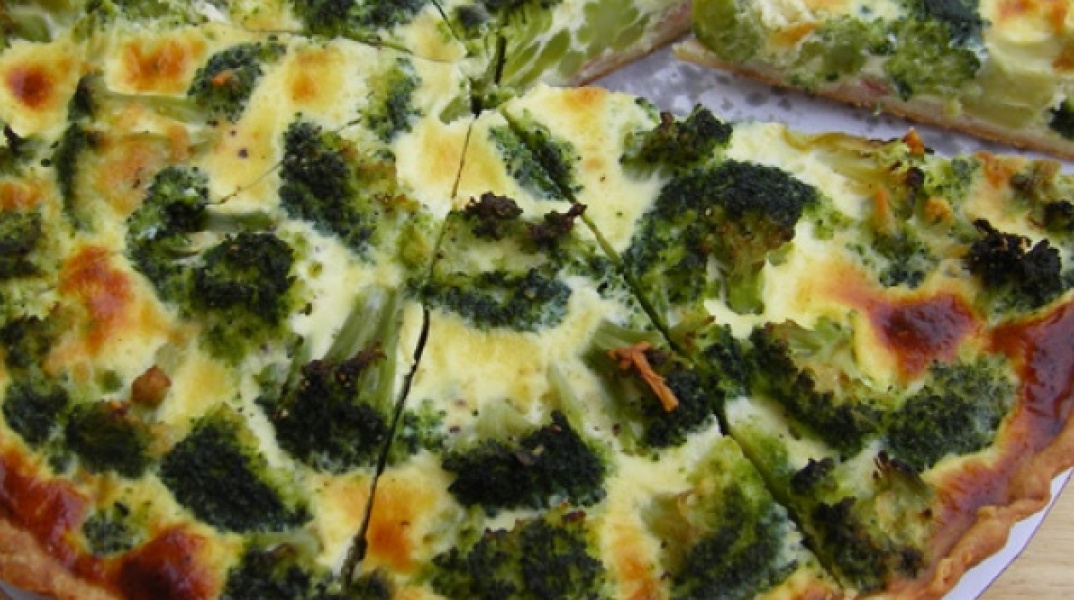 - Ανακατεύουμε τη μισή ποσότητα τυριού με το μοσχοκάρυδο, το σκορπίζουμε στη βάση της τάρτας και τοποθετούμε προσεκτικά το μπρόκολο από πάνω.