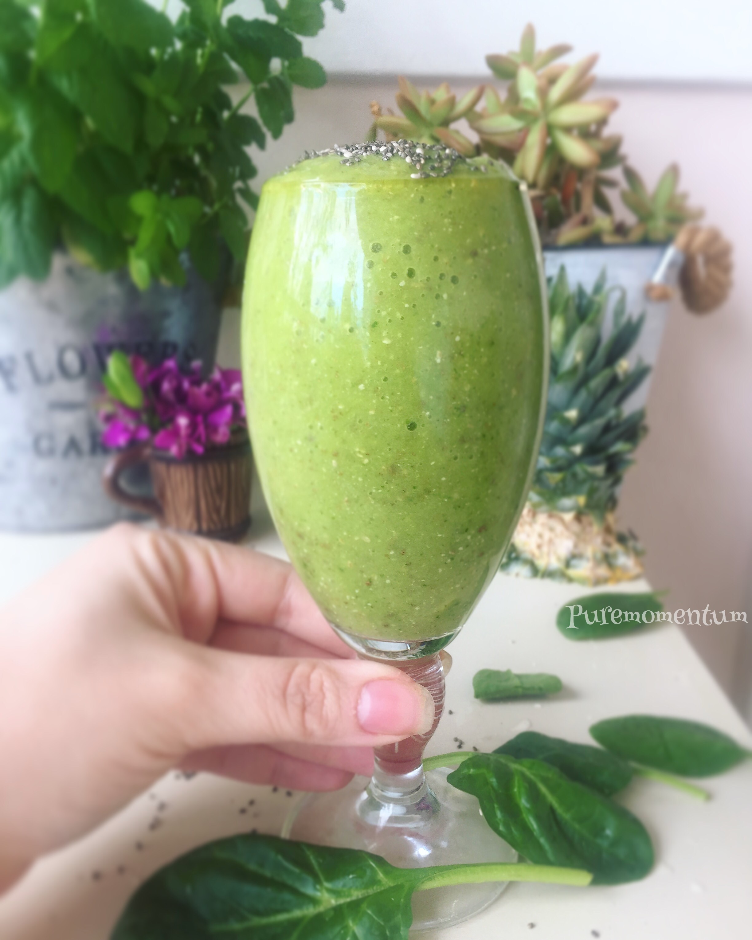 Τι να πρωτοπούμε για το σπανάκι, την πράσινη ενέργεια, που είναι γεμάτο βιταμίνες, κυριως Α. Οι σπόροι Chia, μοναδικά λιλιπούτεια σποράκια και αυτά που θωρακίζουν νερό, προσφέροντας ενυδάτωση όλη μέρα. Ο ανανάς και το πορτοκάλι εξασφαλίζουν τις απαραίτητες βιταμίνες για την βασική κυτταρική λειτουργία. Και βέβαια δεν νοείται ενέργεια χωρίς σάκχαρα. Μισή μπανάνα μας προσφέρει ακριβώς οσα χρειάζεται ο οργανισμός το πρωί.