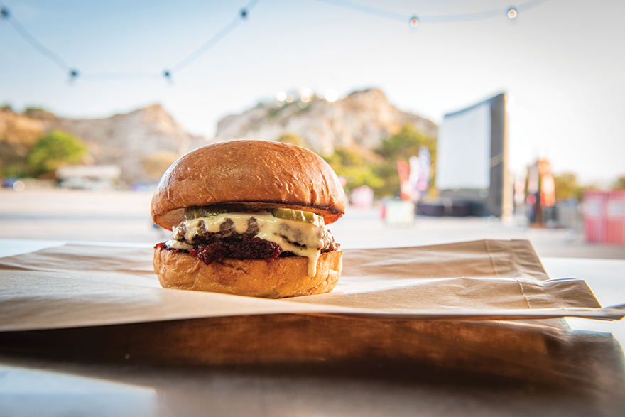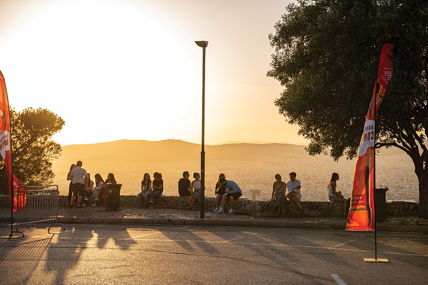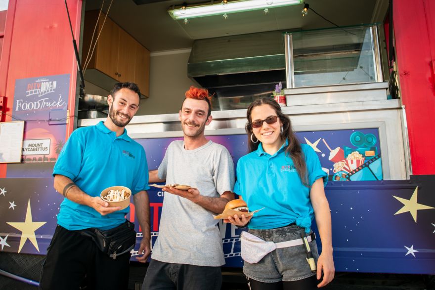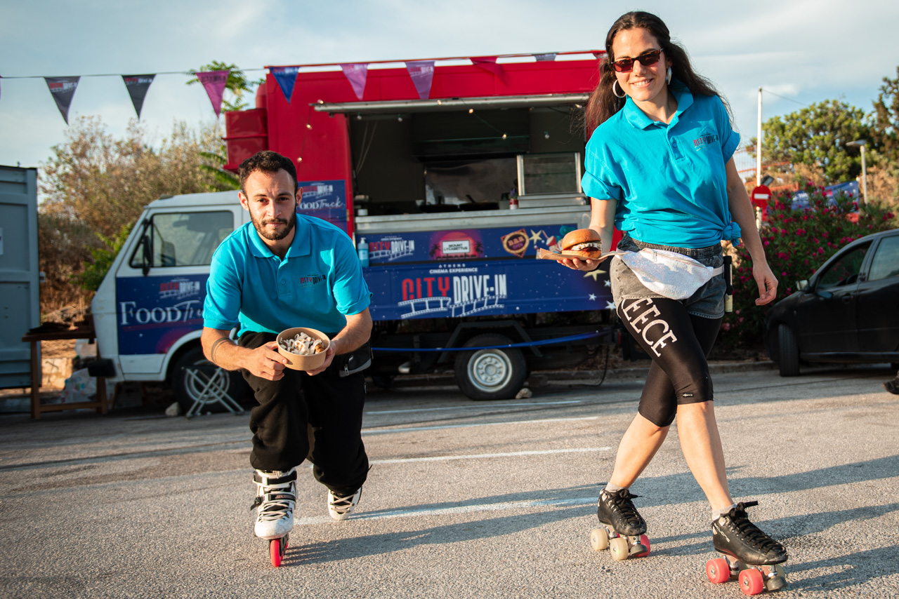 «Είστε για το drive in ή περαστικοί;» ρωτάει ένα ευγενικό παιδί με μάσκα και μπλε μπλούζα στην τελευταία στροφή του λόφου. Πρώτη φορά στη ζωή μου σε drive in, έχω τεράστια περιέργεια να δω τι συμβαίνει. Κι αυτό που συμβαίνει είναι μια γιγαντιαία οθόνη με φόντο τα ροζ σύννεφα του δειλινού, δεκάδες αμάξια και πολλά χαμογελαστά πρόσωπα. Απόψε, όμως, δεν έχω έρθει για την ταινία, αλλά για το... φαγητό!