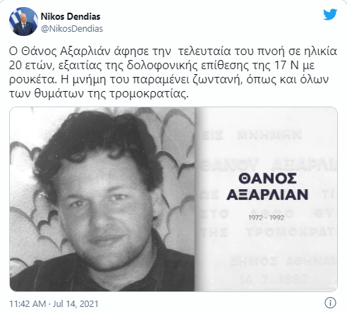 Σαν σήμερα, στις 14 Ιουλίου 1992 η δολοφονία του Θάνου Αξαρλιάν από ρουκέτα της τρομοκρατικής οργάνωσης «17Ν»- H περιγραφή της επίθεσης από τον Κουφοντίνα.