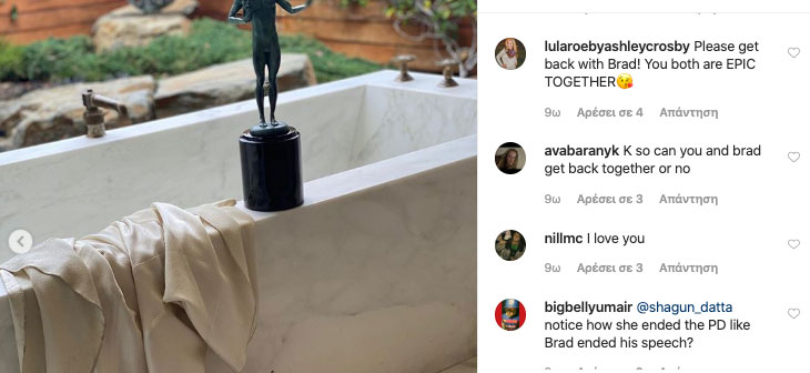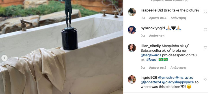 Tο post της ηθοποιού με το ένδυμα πάνω στην μπανιέρα και οι ευχές των followers να τα ξαναφτιάξει με τον Μπραντ Πιτ