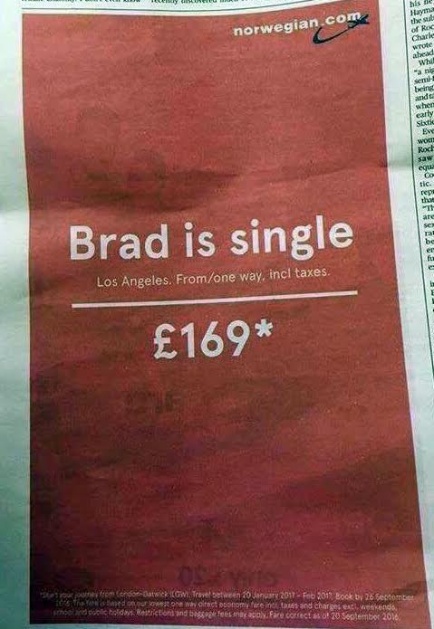 Τώρα που ο Μπραντ Πιτ με την Αντζελίνα Τζολί είναι στα χωρίσματα, η εταιρεία σου δίνει κίνητρο να ταξιδέψεις οικονομικά μέχρι το Λος Άντζελες, τώρα που ο αγαπημένος σου σταρ είναι ξανά single…