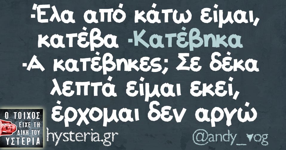 Σε τα μας, φιλαράκι; Που, όταν ανεβαίναμε, εσύ κατέβαινες;