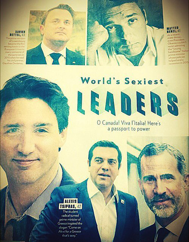 Μαζί με τον Ματέο Ρέντσι της Ιταλίας, τον Τζάστιν Τριντό του Καναδά, τον Φίλιππο Στ' της Ισπανίας, τον Ξαβιέ Μπετέλ του Λουξεμβούργου και ο Αλέξης Τσίπρας της Ελλάδας συγκαταλέγεται στους πιο σέξι ηγέτες στον κόσμο του αμερικανικού περιοδικού People.