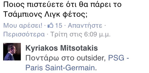 «Τελικά, @kmitsotakis η PSG θα κερδίσει το Champions League όσο και η ΝΔ τις επόμενες εκλογές».