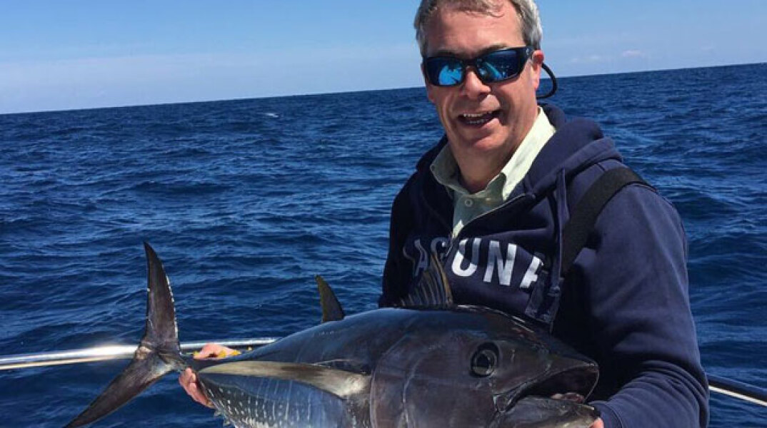Ο Βρετανός πολιτικός, πολέμιος της ΕΕ και υπέρμαχος του Brexit, ανήρτησε τη φωτογραφία αυτή στη διάρκεια ψαρέματος στην Αδριατική το προηγούμενο Σαββατοκύριακο. Ιδιαίτερα ενοχλημένος όμως ο ιταλικός Τύπος τον κατηγορεί ότι προφανώς έχει παραπλανηθεί από τις συνέπειες του Brexit και αγνοεί την εγκυρότητα των κανόνων της ΕΕ σύμφωνα με τους οποίους απαγορεύεται την περίοδο αυτή η αλιεία τόνου.