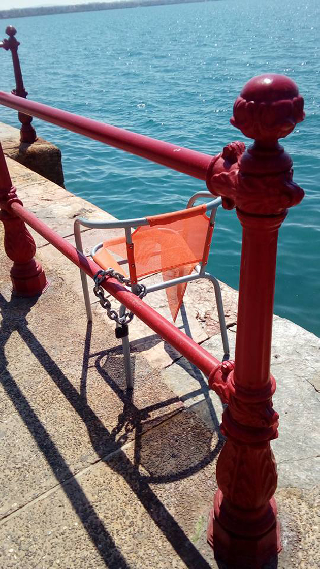 Όπως φαίνεται στις φωτογραφίες που αναρτήθηκαν στο γκρουπ «Active Thessaloniki» στο Facebook, ο συγκεκριμένος κάτοικος πήρε μία καρέκλα και την έδεσε με αλυσίδα στα προστατευτικά κάγκελα που υπάρχουν στον χώρο.