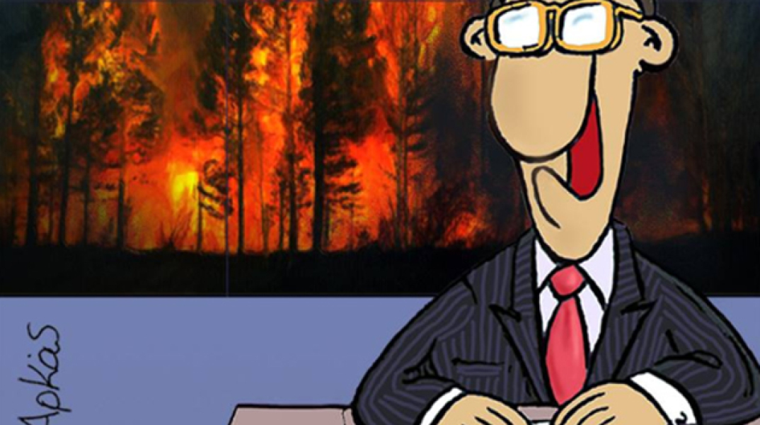Με φόντο μια πύρινη κόλαση το δελτίο του Αρκά σχολιάζει καυστικά την απουσία του πρωθυπουργού από το μέτωπο της πυρόσβεσης. Τρεις ημέρες τώρα που μαίνονται τα μέτωπα στην ανατολική Αττική και σε άλλες περιοχές της χώρας ο σκιτσογράφος παρατηρεί ότι δεν έγινε ούτε μία επίσημη δήλωση από τον κυβερνητικό εκπρόσωπο ή από τον Αλέξη Τσίπρα. Η ανάρτηση, όπως κάθε ανάρτηση του Αρκά, έχει σηκώσει συζήτηση στα social media.