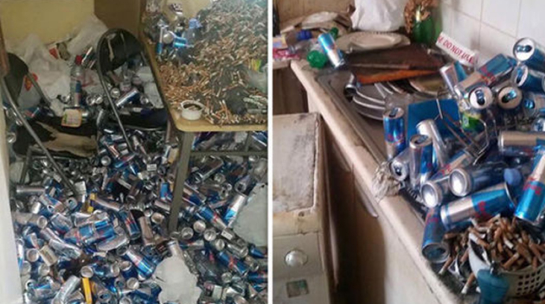 Οι εικόνες των βουνών από αποτσίγαρα, των άδειων κουτιών αναψυκτικών και τα αποφάγια είναι απλά αποκρουστικές. Εκτιμάται ότι το σπίτι αφέθηκε σε αυτή την κατάσταση από καταληψίες.