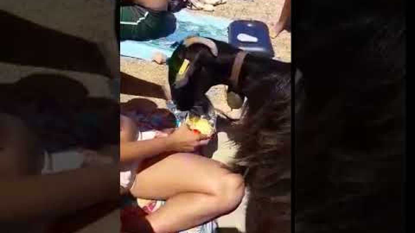 Μία κατσίκα βρέθηκε στην παραλία και χωρίς κανέναν φόβο πλησίαζε τους λουόμενους και με τον τρόπο της τους ζητούσε φαγητό. Εκείνοι φυσικά ανταποκρίθηκαν κι έτσι η αξιαγάπητη κατσίκα άρχισε να τρώει από όπου έβρισκε. Όταν μάλιστα δεν την άρεσε πια αυτό που της έδινε ένας λουόμενος, τον άφηνσε και πήγαινε στον επόμενο.