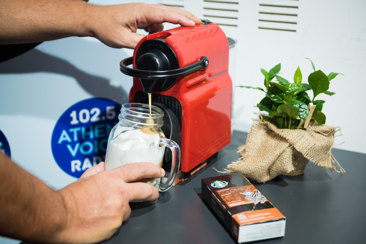 Τρομερό! Όμως, εγώ βιαζόμουν. Περίμενα να ακούσω κάτι που θα με βοηθούσε να φτιάξω τον τέλειο καφέ μόνη μου, στο σπίτι μου ή στο γραφείο μας. Έτσι δεν είχα στοιχηματίσει; Βρε, λες να εξευτελιστώ; Αποκλείεται! Λες και διάβασε τη σκέψη μου ο Παναγιώτης, μου πρότεινε τις Starbucks espresso κάψουλες που περιέχουν καφέ από 100% Arabica κόκκους και είναι ο τέλειος σύμμαχος για να φτιάξω το αγαπημένο μου ρόφημα στο σπίτι ή το γραφείο με μια απλή μηχανή Nespresso. Θα τα καταφέρω και μάλιστα έχω επιλογή ανάμεσα σε τέσσερις ποικιλίες με διαφορετικά αρώματα και γεύσεις: Espresso Roast, Colombia, Guatemala Antigua και Kenya. Πήρα τις απαραίτητες κάψουλες, πήρα τις απαραίτητες πληροφορίες και έφυγα για το σταθμό του Athens Voice Radio.