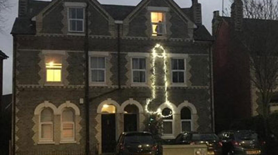 Άλλοι στολίζουν χριστουγεννιάτικα δέντρα, άλλοι καράβι, αλλά οι φοιτητές στο Ρέντινγκ της Νότιας Αγγλίας, είπαν να πρωτοτυπήσουν και να δημιουργήσουν στο σπίτι όπου συγκατοικούν ένα installation από λαμπιόνια που παραπέμπει σε πέος.
