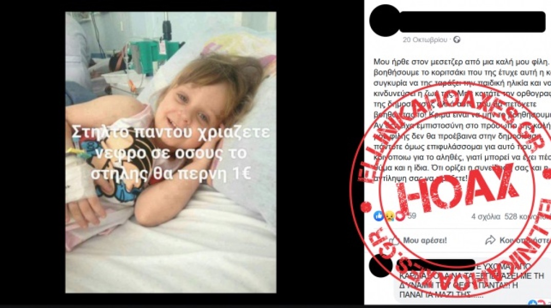 Όχι, ΔΕΝ προσφέρεται 1 ευρώ με κάθε κοινοποίηση σε κοριτσάκι που χρειάζεται μεταμόσχευση νεφρού