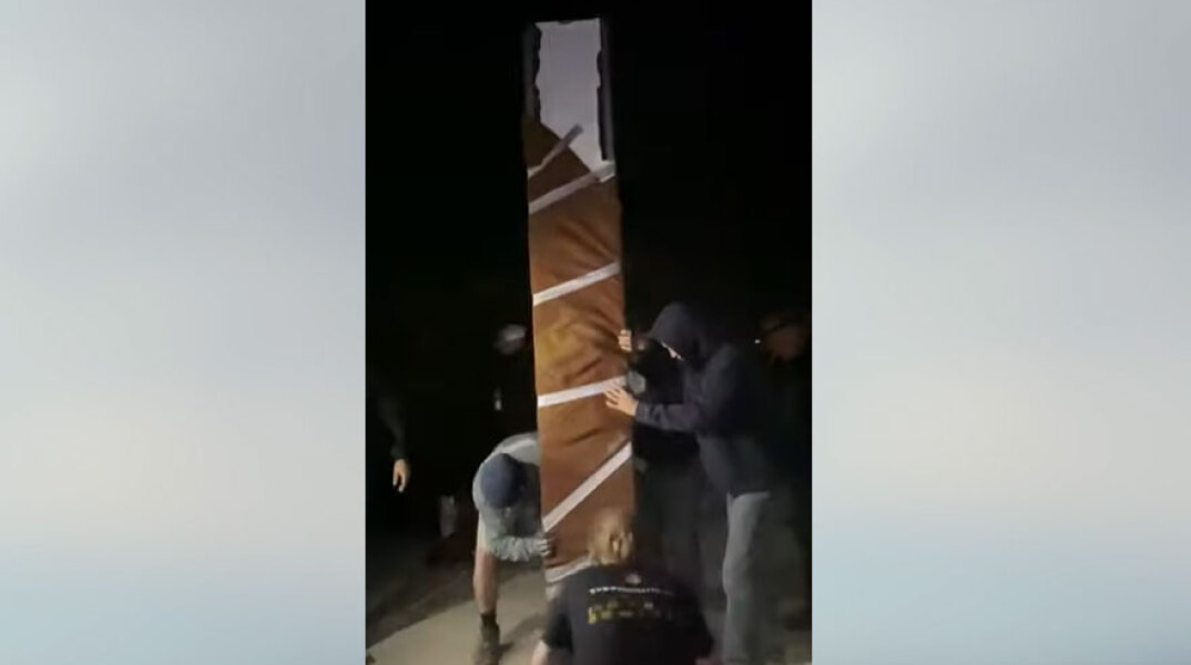 Στη δημοσιότητα το βίντεο που δείχνει καρέ καρέ την ομάδα καλλιτεχνών που τοποθέτησε τον μεταλλικό μονόλιθο στην Καλιφόρνια.
