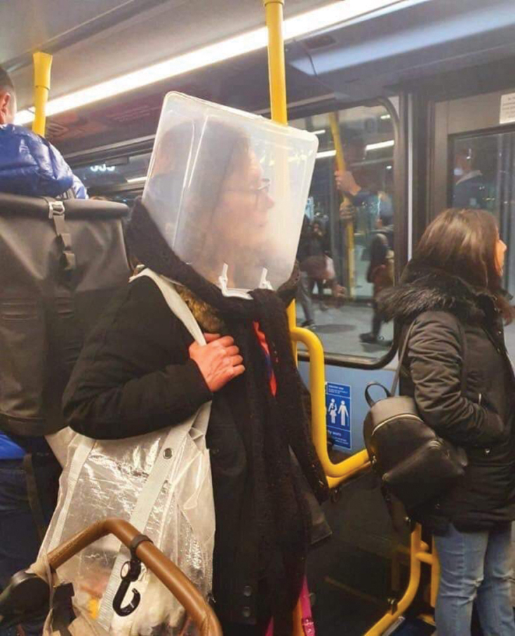 Πολύ ευφάνταστη η μάσκα της κυρίας, μόνο που έχει ένα ελάττωμα.