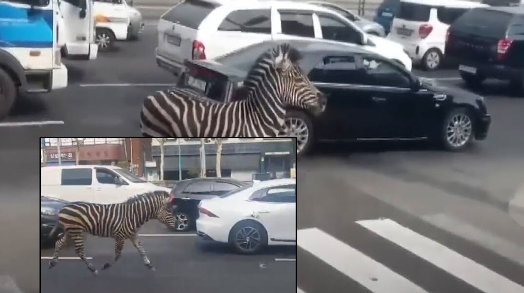 Η ζέβρα το ’σκασε: Η απίστευτη εικόνα σε δρόμο της Σεούλ (βίντεο)