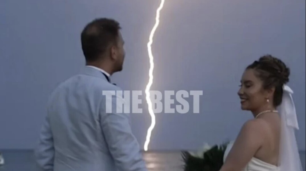 Εντυπωσιακό βίντεο με νεόνυμφο ζευγάρι που φιλιέται και πίσω του πέφτει κεραυνός