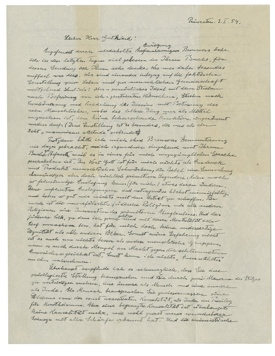 Στο ίδιο γράμμα ο Αϊνστάιν, ο οποίος ήταν Εβραίος, εκφράζει την απογοήτευσή του για την Ιουδαϊκή θρησκεία, η οποία, όπως γράφει, «όπως οι άλλες θρησκείες, είναι η ενσάρκωση των πιο παιδιάστικων προκαταλήψεων». Για τους Εβραίους, επισημαίνει ότι «δεν έχουν για μένα καμία διαφορετική ποιότητα από ό,τι όλοι οι άλλοι άνθρωποι» και «δεν είναι καλύτεροι από τις άλλες ανθρώπινες ομάδες».