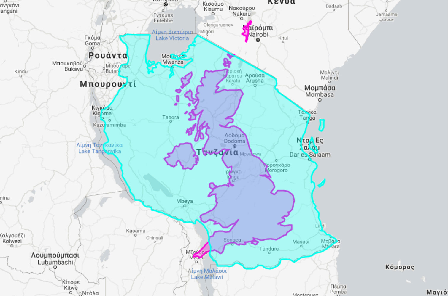 Το Ηνωμένο Βασίλειο έχει το ίδιο μέγεθος με την Τανζανία;